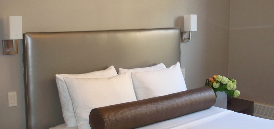 Newly renovated Boutique Guest Room with 1 Queen sized bed accommodates up to 2 persons. Guest room features modern décor, i-pod dock alarm clock radio, telephone with voice mail, flat screen Satellite TV, complimentary wireless internet, remote control air conditioner. Marble Bathroom has walk in shower, bath amenities, hair dryer.
